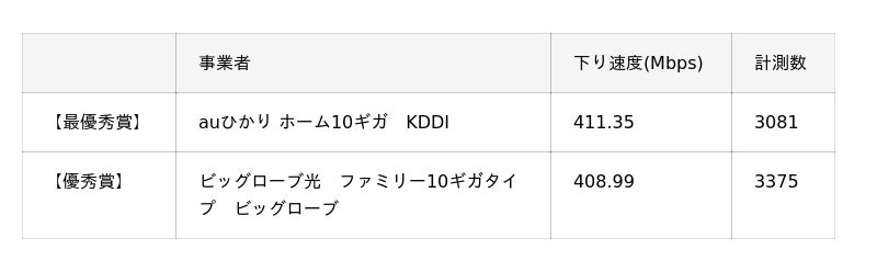 通信回線の実測度評価『RBB SPEED AWARD 2025』結果発表!10Gサービス最優秀はNTT東日本とKDDI! 光コラボではビッグローブ光が1位に