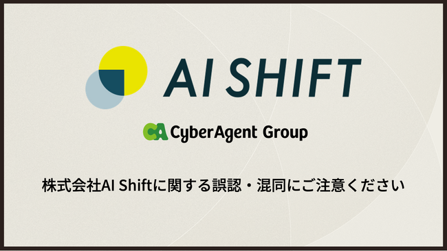サイバーエージェントグループの子会社である株式会社AI Shift(本社:東京都渋谷区、代表取締役:米山結人、以下「当社」)では、当社サービスに関するお問い合わせやご評価において、類似名称の企業・サービスと混同されるケースが発生していることを確認しております。