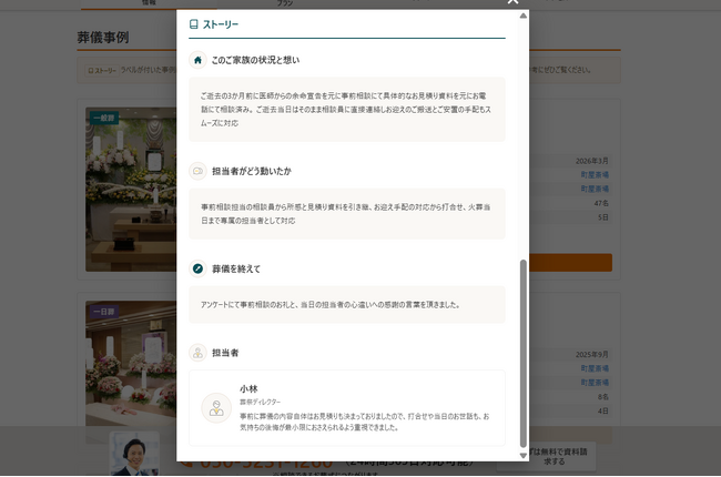 病状やいつ頃から葬儀の準備を始めたかといった経緯が記載されているため、自分の状況と近い事例を読んだ上で電話できます。担当者に状況を伝えやすく、会話をスムーズに進められます。