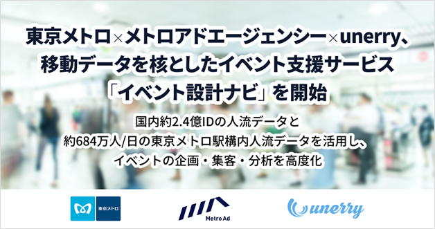 東京メトロ×メトロアドエージェンシー×unerry、移動データを核としたイベント支援サービス「イベント設計ナビ」を開始
