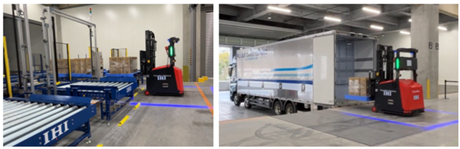 <IHI/IHI物流産業システム:施設内オペレーション、運行通知、無人フォークリフト、自動倉庫手配>