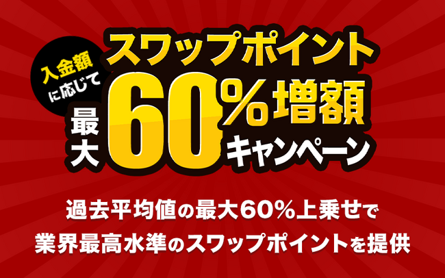 株式会社外為どっとコム(本社:東京都港区、代表取締役社長:竹内 淳)は、店頭FX『外貨ネクストネオ』におきまして、2026年3月30日(月)より「入金額に応じてスワップポイント最大60%増額キャンペーン」を実施します。