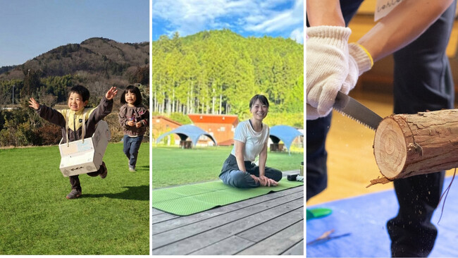 親子ヨガや段ボールカー工作など、こどもが主体となって楽しめる企画をご用意しました。あわせて、コンサートや調香ミスト作り、地元ブランド木材「西川材」を使った木工ワークショップなど、大人も一緒に楽しめる内容もそろえています。