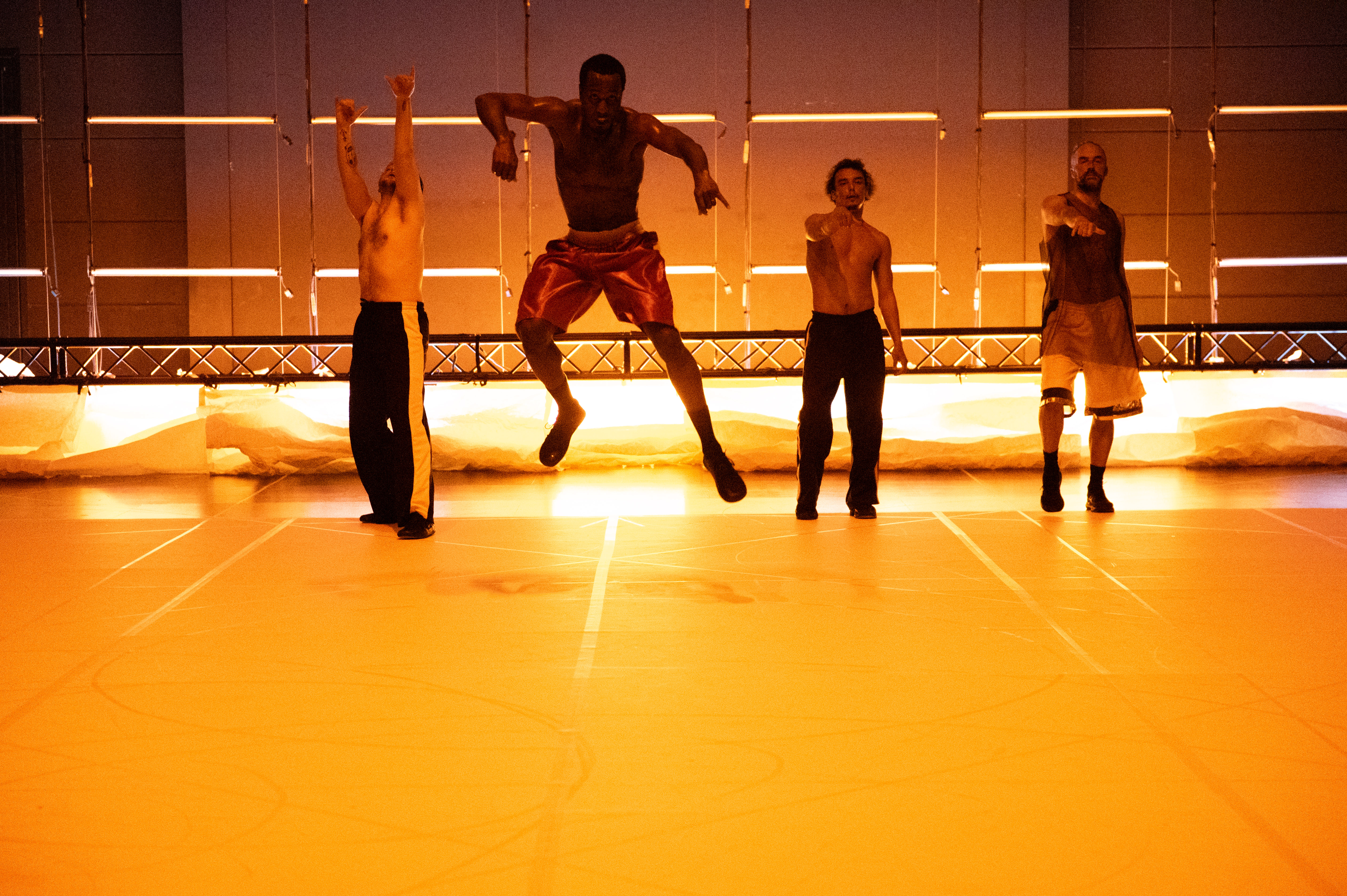 緻密な音楽分析をもとに振付を構築するケースマイケルと、沈黙の中から動きを立ち上げるムリジガが、4人のダンサーとともに、ブレイクダンスの動きからも着想を得て、振付の語彙を発展させ創り上げた本作。ダンサーたちの跳躍、旋回、回転は、天体の軌道や生命の循環と呼応するように展開します。