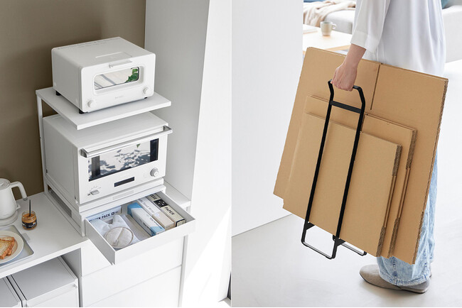【山崎実業 新商品のお知らせ】 2段式の引き出し付きキッチンラックや、収納したまま持ち運べるダンボールストッカーなど、新商品が発売になりました。