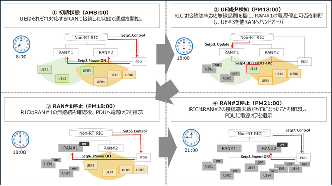 また、NTT東日本では、RIC を用いてローカル5Gの通信利用状況を自律的に判断し、RANの消費電力削減に向けたマルチベンダー接続試験を実施し、一定の条件下において約65%の電力削減に成功しました。