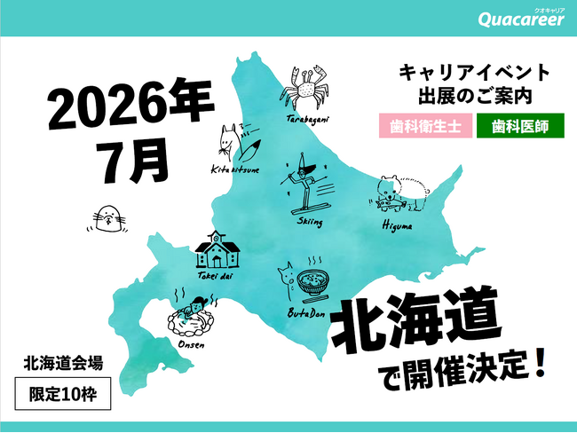 株式会社クオキャリア(本社:東京都豊島区)は、歯科衛生士合同就職説明会「DH就活フェス」および歯科医師合同就職説明会「MEETUP」を、2026年7月12日(日)に北海道(札幌)のアスティホールにて開催いたします 。
