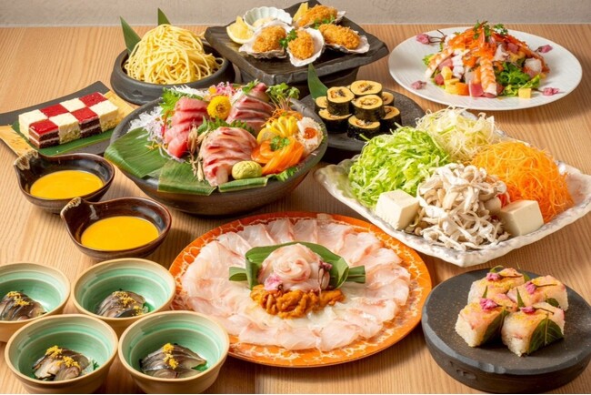 桜鯛のお造りや押し寿司などをはじめ、主役に桜鯛のウニしゃぶをご用意した、春ならではの特別コースです。