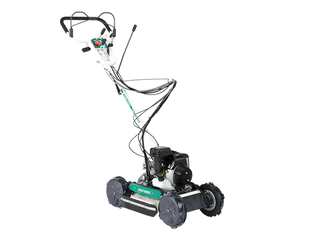 排気量70ccのパワーと最高車速2.6km/hでパワフルな草刈りを実現。また、スパイク車輪が地面に食い込み、4輪駆動で傾斜地の草刈りも快適に行います。