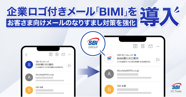 SBIホールディングス株式会社(本社:東京都港区、代表取締役会長兼社長:北尾 吉孝)の連結子会社で暗号資産交換業を営むSBI VCトレード株式会社(本社:東京都港区、代表取締役社長:近藤 智彦、以下「当社」)は、2026年3月30日(月)より、当社からお客さま宛に配信するメール上に、当社の企業ロゴを表示させる認証技術「BIMI」※を導入しました。当社は、本技術の導入により、お客さまが当社配信のメールと当社になりすましたメールを、当社ロゴの有無で判別できるようにすることで、フィッシング詐欺被害に遭うお客さまの数を1人でも減らすことを目指します。