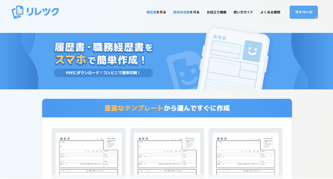 ・履歴書作成サービス:リレツク