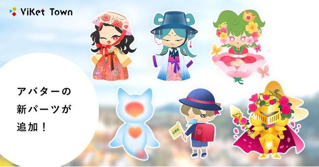 「ViKet Town(ビケットタウン)」では自分となって働くアバターが存在します。アバターには、頭、髪、目、口、服装、数種類の初期パーツから選択する事ができ、理想とする自分を生み出す事が可能です。 アバターを通してのコミュニケーションは、年齢、国籍、性別、見た目、生まれ持ったルーツによる様々な偏見をなくし、 純粋な気持ちで仲間とのプロジェクトの成功を目指す事ができます。 自分に自信がない人でも、働く新たな自分を生み出すことで、コミュニケーション能力の向上も期待でき、異空間で働くアバターは、様々なアイテムを身に着け、仲間とのコミュニケーションのきっかけともなります。今回は、華やかな韓服(男女)や、親指姫の衣装など、春の暖かみをイメージさせる衣装が新登場!今月もお洒落をして楽しく過ごそう!