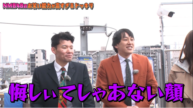 関西実力派芸人4名の“無茶ぶり指示”にNMB48が全力で対応!展望台や体験型アトラクション「Dive&Walk」での大喜利ロケでは、面白回答が続出し、三遊間も思わず悔しがる表情に。