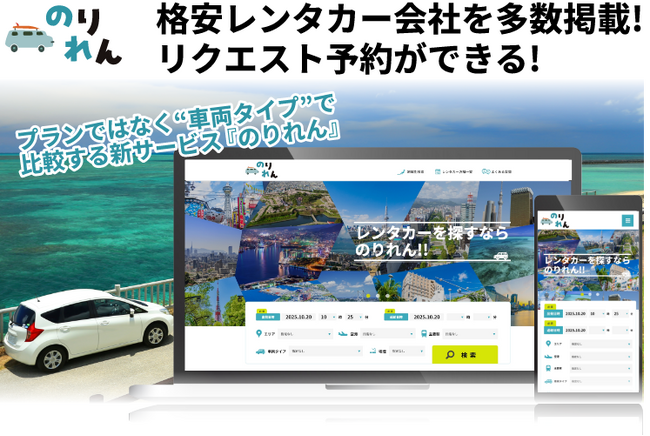 現在、旅行や出張でレンタカーを利用する際、多くの比較サイトでは「〇〇プラン」「〇〇割」といった各社独自の名称が並び、結局どれが一番お得なのかを判断するのに多大な時間を要しています。 『のりれん』は、こうした「選ぶストレス」をゼロにすることを目指し、「価格」と「車両タイプ」という最も本質的な情報だけで比較できるプラットフォームを構築しました。[画像2: https://prcdn.freetls.fastly.net/release_image/177169/5/177169-5-4ff9f9bbc989acc9a355da47ba532712-740x500.png?width=536&quality=85%2C75&format=jpeg&auto=webp&fit=bounds&bg-color=fff ]