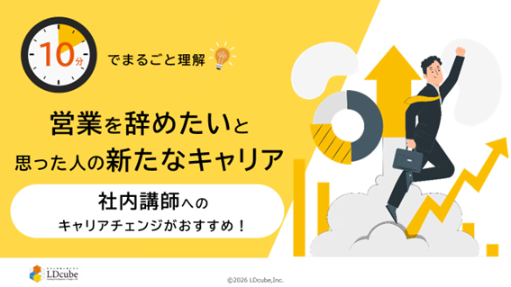 研修のスタイルにとらわれない企業向け人材育成サービスを提供する株式会社LDcube(本社:東京都千代田区、代表取締役社長:新井澄人、以下「当社」)は、「10分でまるごと理解!営業を辞めたいと思った人の新たなキャリア」を無料公開しましたので、お知らせします。