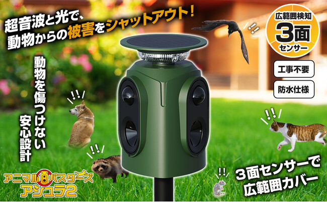 【Amazon新生活セール初参戦】3面センサーで死角を許さない!進化した動物撃退器『アニマルバスターズ アシュラ2』が遂にセールに登場!