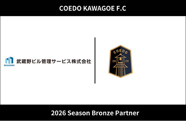 COEDO KAWAGOE F.Cを運営するCOEDO KAWAGOE F.C株式会社(埼玉県川越市、代表取締役 有田和生)は、川越を拠点に清掃事業、警備事業おこなう、武蔵野ビル管理サービス株式会社(埼玉県川越市、代表取締役 家内雅幸)と2026シーズンのブロンズパートナー契約を締結したことを発表いたします。