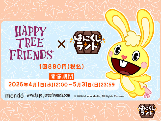 株式会社コアデは、ハズレ無しオンラインくじ「はにくじランド」にて【Happy Tree Friends×はにくじランド】を発売いたします。