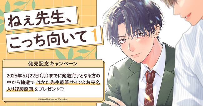 直筆サイン入り複製原画が当たる!はかた先生『ねぇ先生、こっち向いて(1)』発売記念キャンペーン開催!【ホーリンラブブックス】