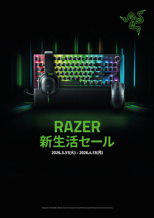 ゲーマー向けライフスタイルブランドとして世界をリードするRazer(TM) (本社:米国カリフォルニア州およびシンガポール、共同創業者兼CEO:Min-Liang Tan)の日本法人Razer Japan株式会社(新宿区)は、2026年3月31日(火)から4月13日(月)までの期間限定で、セール「Razer 新生活セール」をオンラインおよびオフラインにて同時に開催します。