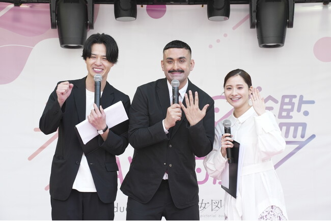 本イベントのMCを務めたのは、人気お笑いコンビのデニス(植野行雄・松下宣夫)と、『沖縄美少女図鑑』出身で現在は俳優・タレントとして幅広く活躍する比嘉梨乃の2組。デニスの植野と比嘉は、昨年7月の結婚発表後初の夫婦共演ということもあり、ステージに登壇すると祝福の歓声と拍手が沸き起こりました。時折漫才さながらの掛け合いを見せるなど息ぴったりの進行で、会場は終始笑顔と笑い声が溢れていました。MCコメント
