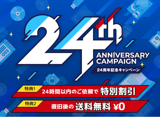 株式会社アラジン(本社:福岡県福岡市、代表取締役:長濱 慶直)が運営する「データレスキューセンター」は、2026年5月をもちまして会社設立24周年を迎えます。これまでのご愛顧に感謝し、24周年記念キャンペーンを実施いたします。