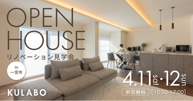 愛知県・岐阜県・東京都(一部エリア除く)でリノベーション事業を展開する株式会社sumarch(本社:愛知県名古屋市中村区、代表取締役:鳥居儀彰、以下KULABO)は、戸建てリノベーション見学会を2026年4月11日(土)、12日(日)に愛知県一宮市にて開催いたします。