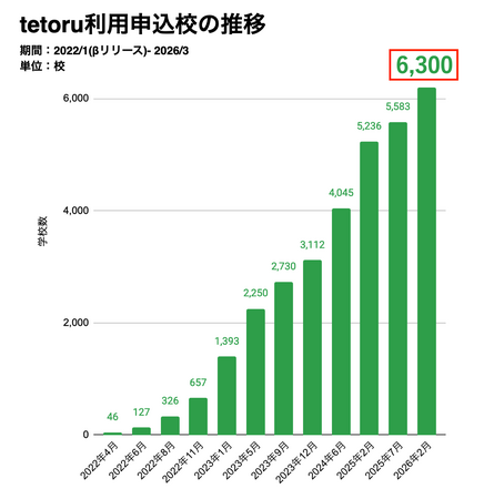 SchoolTech事業を展開するClassi株式会社(本社:東京都新宿区、代表取締役社長:竹岡章、以下Classi)は、小中学校向け保護者連絡サービス「tetoru(テトル)」の導入校数が6,300校に至ったことをお知らせいたします。