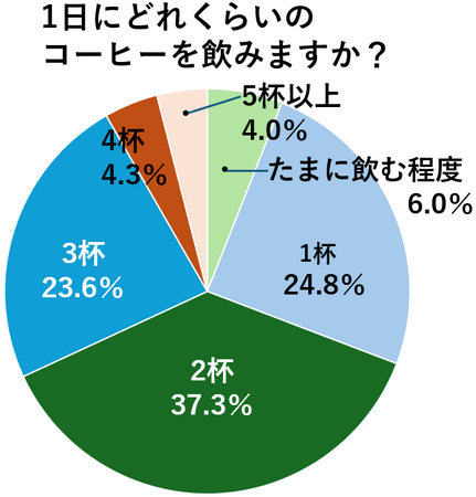 「旅好きな50歳以上」にコーヒーが好きか伺ったところ、好きだという人が96.3%でほとんどの人がコーヒーを飲むことを楽しんでいることが分かりました。コーヒーが好きとお答えいただいた人に1日にどれくらい飲んでいるかを尋ねると、2杯と答えた人が37.3%と最も多く、次いで1杯が24.8%、3杯が23.6%と続きました。合わせて85.7%となり、だいたい1~3杯程度を1日に嗜んでいる人が多数を占めているようです。