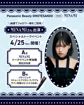 [画像: https://prcdn.freetls.fastly.net/release_image/163417/23/163417-23-4dcb865915a7f58e5781f5b0bcaed452-1080x1350.png?width=536&quality=85%2C75&format=jpeg&auto=webp&fit=bounds&bg-color=fff ]※MINAMIさんトークイベントは完全抽選制のため、ご当選者様のみが参加いただけます。