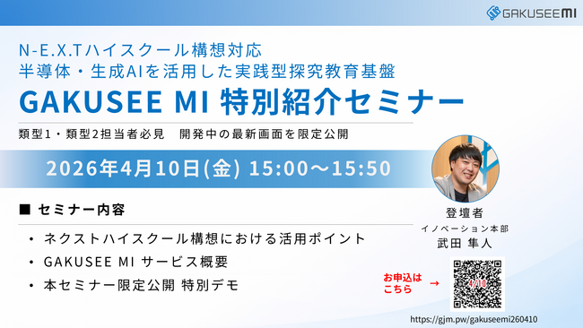 【4/10開催】N-E.X.T.ハイスクール構想に対応、半導体×生成AIの実践型探求教育基盤「GAKUSEE MI」特別紹介セミナー