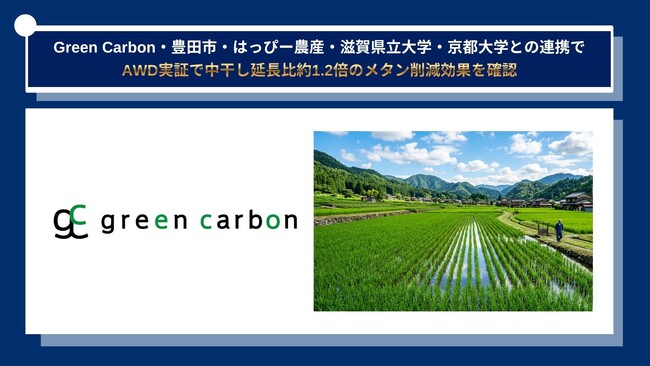 Green Carbon株式会社、豊田市・はっぴー農産・滋賀県立大学・京都大学とのAWD実証で中干し延長比約1.2倍のメタン削減効果を確認