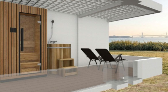 海からの心地よい風に包まれながら、水風呂と外気浴で至福のリカバリーステイを。