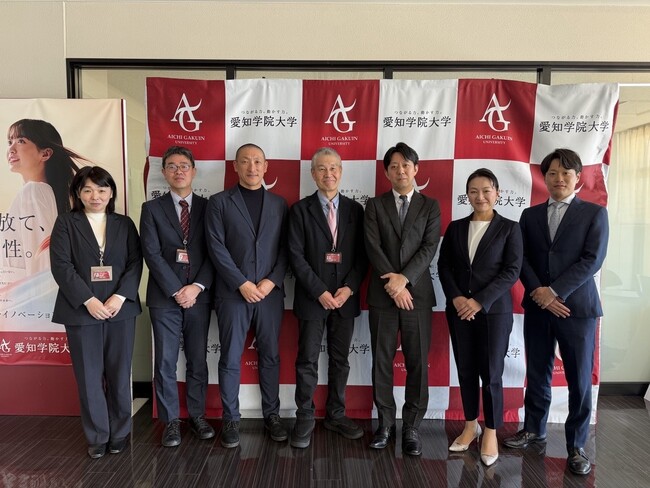 左から、愛知学院大学 情報支援課 加藤 恵美、同課長 塚本 浩昭、日進キャンパス事務局長 山田 義丈、大学事務局長 福嶋 隆昭、JAST GAKUEN事業部長 野嶋 賢司、同製品サポート部 製品サポート課長 奥村 末容、同営業部 岡野 巧歩