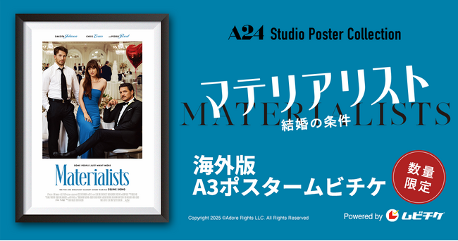 株式会社ムービーウォーカー(代表取締役社長:五十嵐淳之)は、4月1日(水)AM10:00より『マテリアリスト 結婚の条件』(5月29日公開)のA3サイズ海外版ポスタームビチケ前売券(オンライン)を数量限定で販売します。