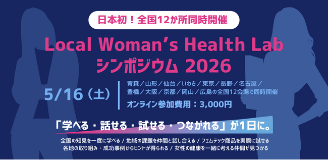 地域の女性の健康課題解決やヘルスリテラシー向上に取り組む全国ネットワーク「Local Woman’s Health Lab(LWHL)」は、2026年5月16日、日本初となる全国12地域同時開催の女性の健康シンポジウムを実施します。