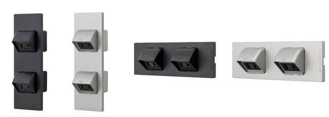 ● コンセント部と取付枠が分かれており、パーツ同士を組立てる構造となっているため、設置スペースに応じて縦型か横型をお選びいただけます。