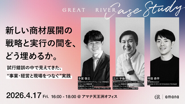 コミュニケーション変革をクリエイティブで実現する株式会社アマナ(本社:東京都品川区、代表取締役社長:金子剛章、以下「アマナ」)は、2026年4月17日(金)、「Great RIVER Case Study 新しい商材展開の戦略と実行の間を、どう埋めるか。 ― 試行錯誤の中で見えてきた、“事業・経営と現場をつなぐ”実践 ―」をテーマにセミナーを開催します。