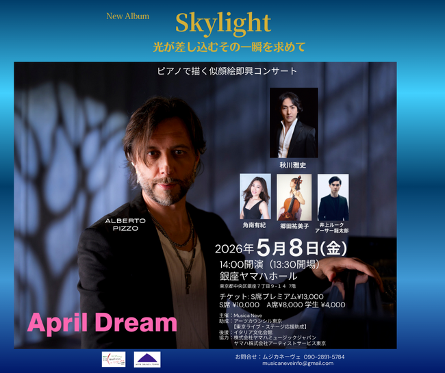 昨年の大阪・関西万博イタリア館のテーマソング「Sky」を作曲し、イタリア館内劇場に設置されたヤマハコンサートグランドピアノCFXアンバサダーとして活躍した。「Sky」を含む全オリジナル10曲を収録したニューアルバム『Skylight』を2025年に発売。