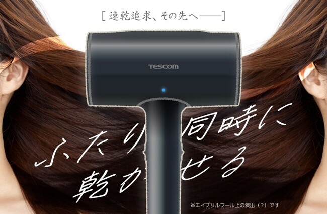【エイプリルフール】誕生。速乾追求、その先へ。”T”ESCOMから、ふたり同時に乾かせるドライヤー新発売