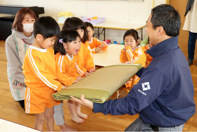 地元の子どもたちへい草のお昼寝布団をイケヒコが保育施設への寄贈を2026年も実施