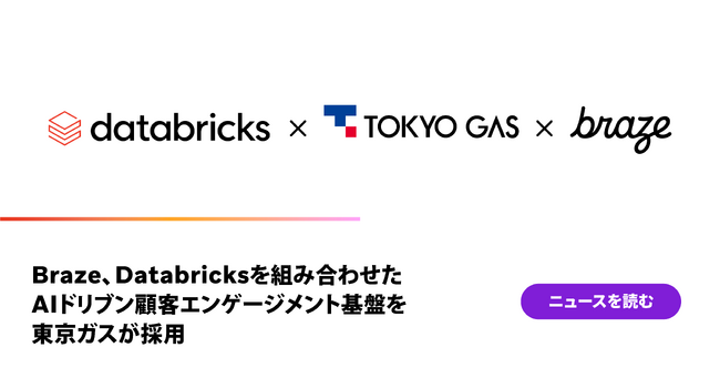 顧客エンゲージメントプラットフォームのリーダーであるBraze株式会社(本社:東京都港区、代表取締役社長:水谷篤尚、以下「Braze」)は、東京ガス株式会社(社長:笹山晋一、以下「東京ガス」)が、顧客との価値共創をさらに深める取り組みとして、AIドリブン顧客エンゲージメント基盤にBrazeとDatabricks を採用したことをお知らせします。