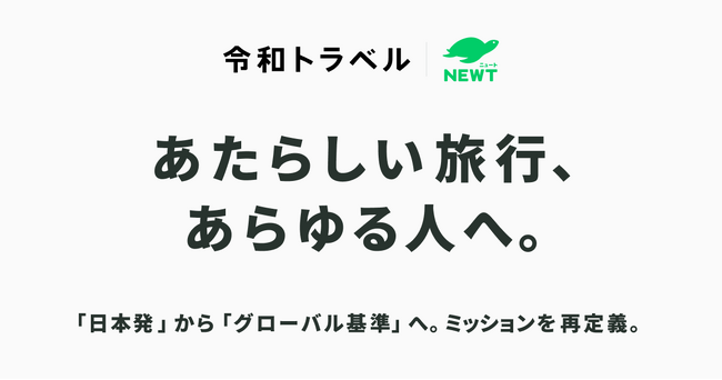 かしこい、おトク、旅行アプリ『NEWT(ニュート)』を運営する株式会社令和トラベル(本社:東京都渋谷区、代表取締役社長:篠塚 孝哉)は、このたびミッションを再定義し、新ミッション「あたらしい旅行、あらゆる人へ。」を策定したことをお知らせします。
