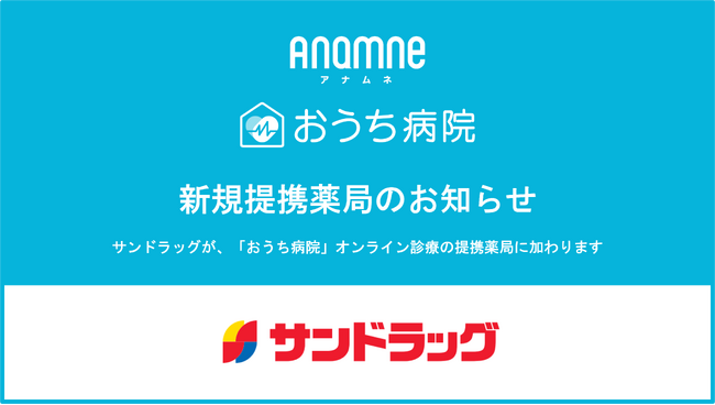 株式会社アナムネ(本社:東京都中央区、代表取締役CEO:菅原 康之、以下「アナムネ」)は、2026年4月1日より、「おうち病院」オンライン診療の提携薬局として、サンドラッグとの提携を開始いたします。