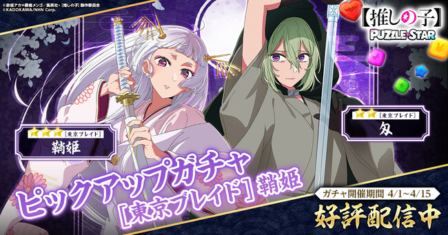 株式会社KADOKAWA(本社:東京都千代田区、取締役 代表執行役社長 CEO:夏野剛、以下 KADOKAWA)は、TVアニメ『【推しの子】』初の公式パズルゲーム『【推しの子】Puzzle Star』(開発:NHN/国内パブリッシング:KADOKAWA)にて、4月1日(水)より、ピックアップガチャ[東京ブレイド]第3弾「[東京ブレイド]鞘姫」を開催します。