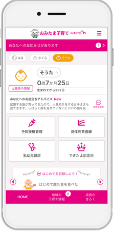 小美玉市に採用された『おみたま子育て』は、スマートフォン・タブレット端末・PCに対応したサービスで、妊産婦と子どもの健康データの記録・管理や予防接種のスケジュール管理、出産・育児に関するアドバイスの提供、離れた地域に住む祖父母など家族との共有機能や、市が配信する地域の情報をお知らせするなど、育児や仕事に忙しい母親や父親を助けてくれる便利な機能が充実しています。