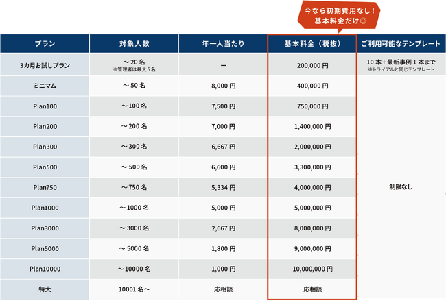 新たに「Plan500」から「Plan10000」まで、ユーザー規模に応じたプランを標準化しました。これにより、企業規模に合わせて無駄のない料金設計が可能となり、全社展開もしやすい価格体系となりました。