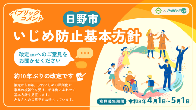 【日野市×PoliPoli Gov】いじめ防止基本方針改定案のパブリックコメントを開始