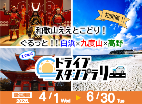 JAF(一般社団法人日本自動車連盟)和歌山支部(支部長・片畑秀夫)は、2026年4月1日(水)から6月30日(火)まで、海辺の絶景や山岳エリアの豊かな自然、歴史と文化が息づく名所が点在する白浜町・九度山町・高野町の魅力あふれるスポットを巡り、スマートフォンでスタンプを集めるドライブスタンプラリーに協力しています。