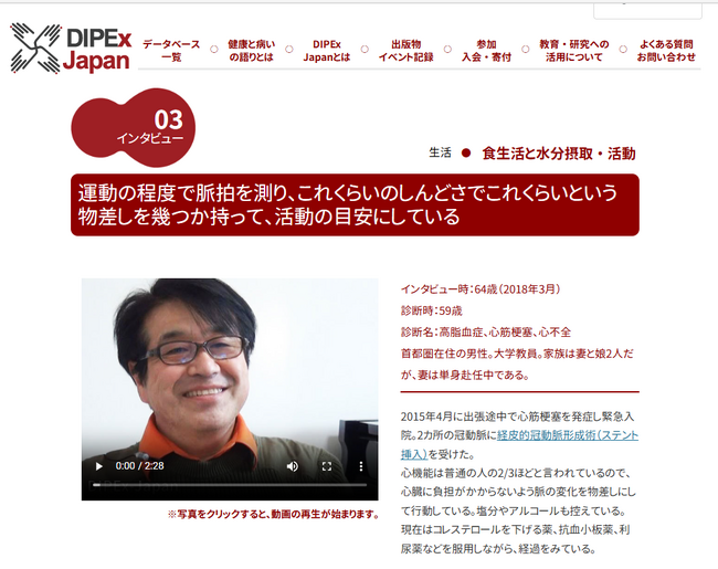 認定NPO法人 健康と病いの語りディペックス・ジャパン(理事長:中山健夫 事務局:東京都中央区)は、このたび12番目のプロジェクトである「心不全の語り」を公開しました。